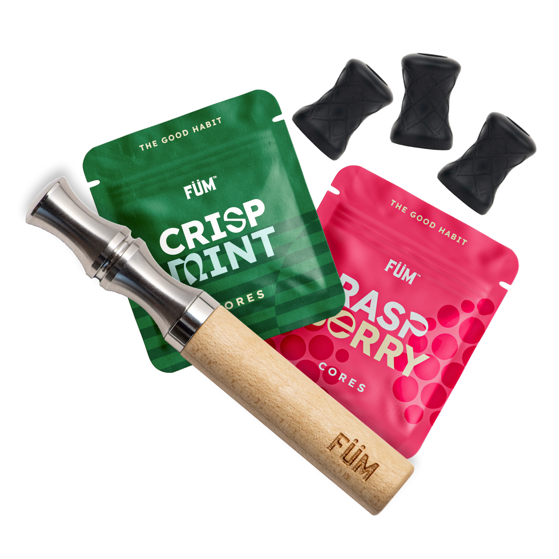 Physiology shows stopping a bad habit cold turkey is very hard on your brain. FÜM works by replacing your hand-to-mouth fixation, calming nervous tension through fidgeting, and distracting you from your bad habit with delicious flavor.
